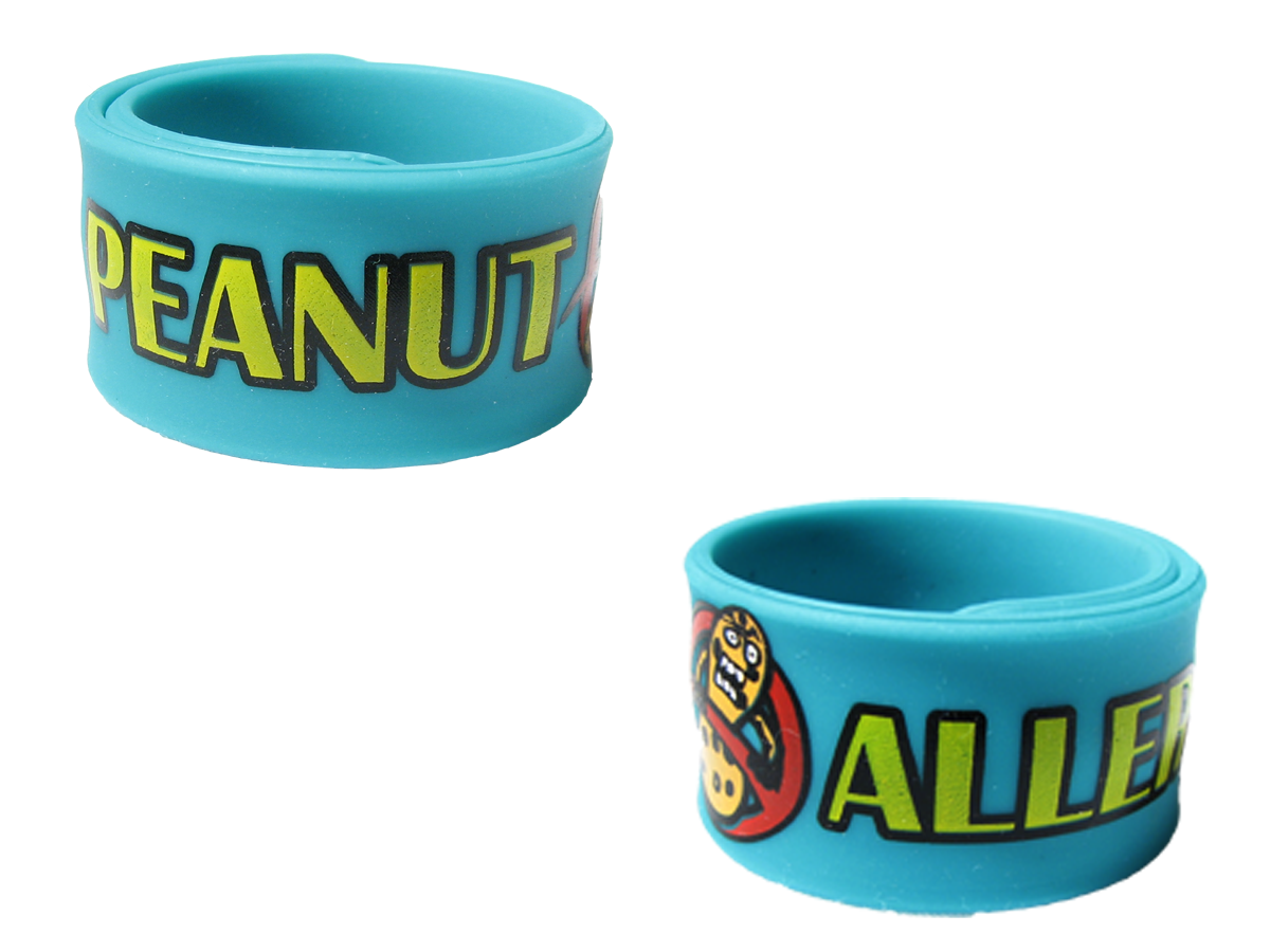 In case you’d forgotten, our Peanut Allergy Slap Bracelets are available now over at our website. Here they are again. This is just the first of many exciting allergy awareness products that will help empower and protect allergic kids!