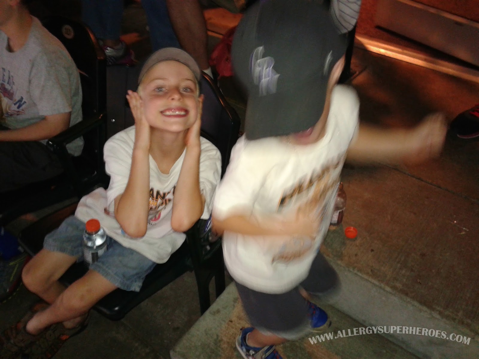 These two little dudes were happy to show off their Allergy Superheroes “Peanuts are my Nemesis” shirts and enjoy the game!